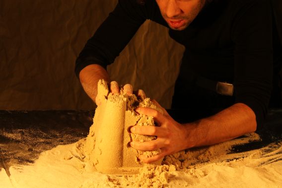 Notre défi après Tierra Efímera était la création d’un nouveau spectacle toujours avec la matière comme point de départ, mais cette fois-ci, avec un fil narrateur, une histoire. En cherchant entre contes et mythes, nous sommes tombés sur l’album illustré de Thierry Dedieu : Le Roi des Sables.
